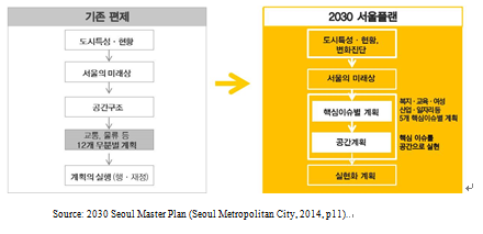 As the 2030 Seoul Plan became the top-level plan for the basic direction of Seoul, it was specifically indicated to review the implementation process continually and monitor the Urban Master Plan.