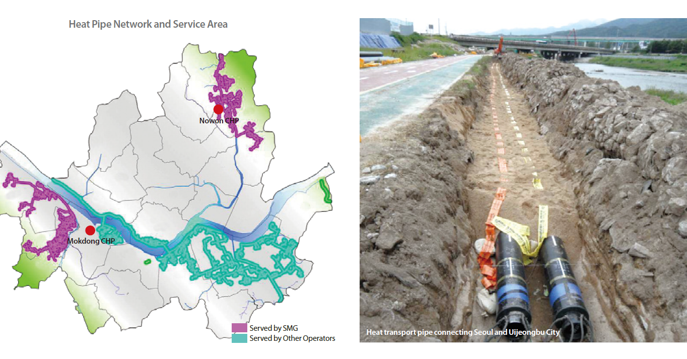 In addition, district energy systems can use waste heat from burning fuel to produce electricity at a power plant. Through this mechanism, the SMG plans to provide district energy services to new housing in Magok area, 66,000 multiple-family housing units in Guro, Guemcheon, and Yeongdeungpo gu-districts and 177 office buildings. The targeted penetration rate is 45% by 2020.