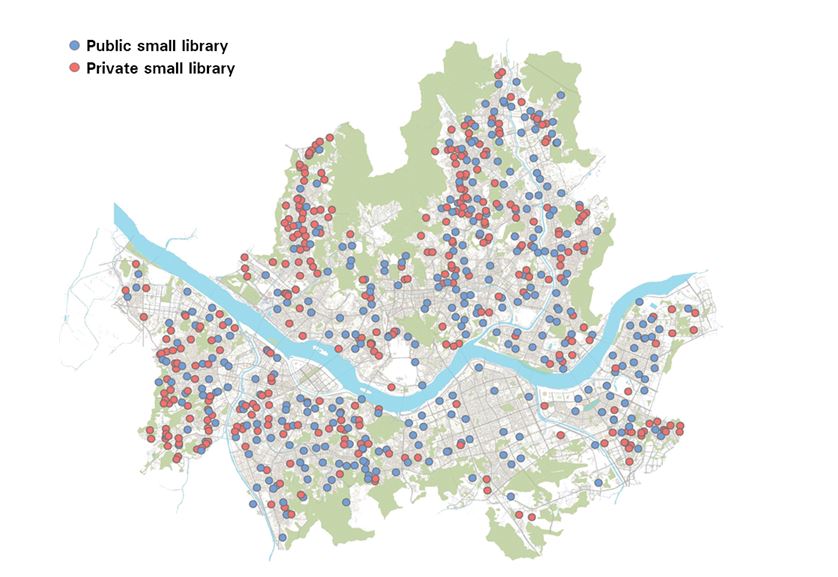 Recently, “Small Libraries” have been increasingly erected throughout Seoul. “Small Libraries” refer to those equipped with more than 1,000 books and at least ten seats in a space of minimum 33 square meter. They can be located in various places from a church, kindergarten, community center, village hall, apartment complex, correctional facility, probation office, military camp, company building to social and political campaign offices. Their number had jumped from 383 in 2007 to 857 as of 2015. They are found in every region of Seoul, with the largest number (277, representing 32.3 percent of the total) occupying in Southwest region. Northeast, Southeast, Northwest and Downtown regions have 254, 135, 129 and 62 Small Libraries, respectively. Among districts, Eunpyeong-Gu has most Small Libraries(73). Some Small Libraries located in an area with a modicum of cultural resources serve as the venue where people interact with one another.