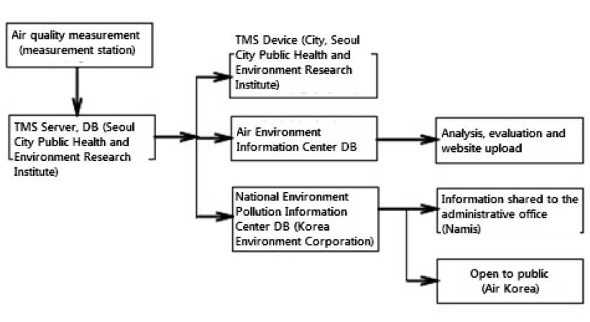 Air quality pollution monitoring stations are located in various areas around Seoul which are said to best represent each area's specific and idiosyncratic characteristic. The monitoring stations automatically measure air quality 24 hours a day. These results are then sent to the Seoul Public Health and Environment Research Institute, and released to the general public and citizens of the city through its website. The measured values are sent to SMG and the Ministry of Environment after a thorough search process. In order to secure trustworthy values, only the statistics that have achieved more than 75% measured values during the designated period are considered to be valid.
