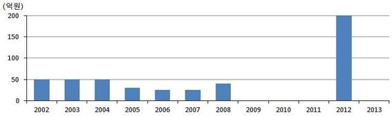 연간 지원금도 계속 증가하였는데, 2002년 3.4억원 정도였던 보조금이 2013년에는 55.6억원으로 크게 증가하였다. 2002년~2013년의 총 보조금액은 232.4억원이며, 연간 세대별 지원금도 2002년 35.2만원에서 2013년에는 55.1만원으로 약 20만원 정도 상승하였다.