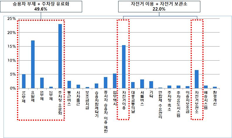1-10 System, Weekly No-Driving Day, 5-day system, Odd-even system, Comuter bus, Phased commuting hours, Subsidy, Car sharing, Restrictions on car use by facility employees